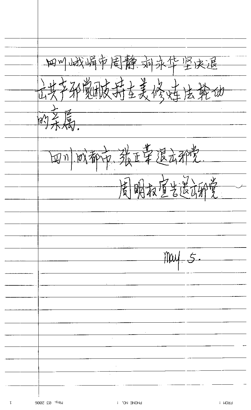 四川峨嵋市周静、刘永华坚决退出共产邪