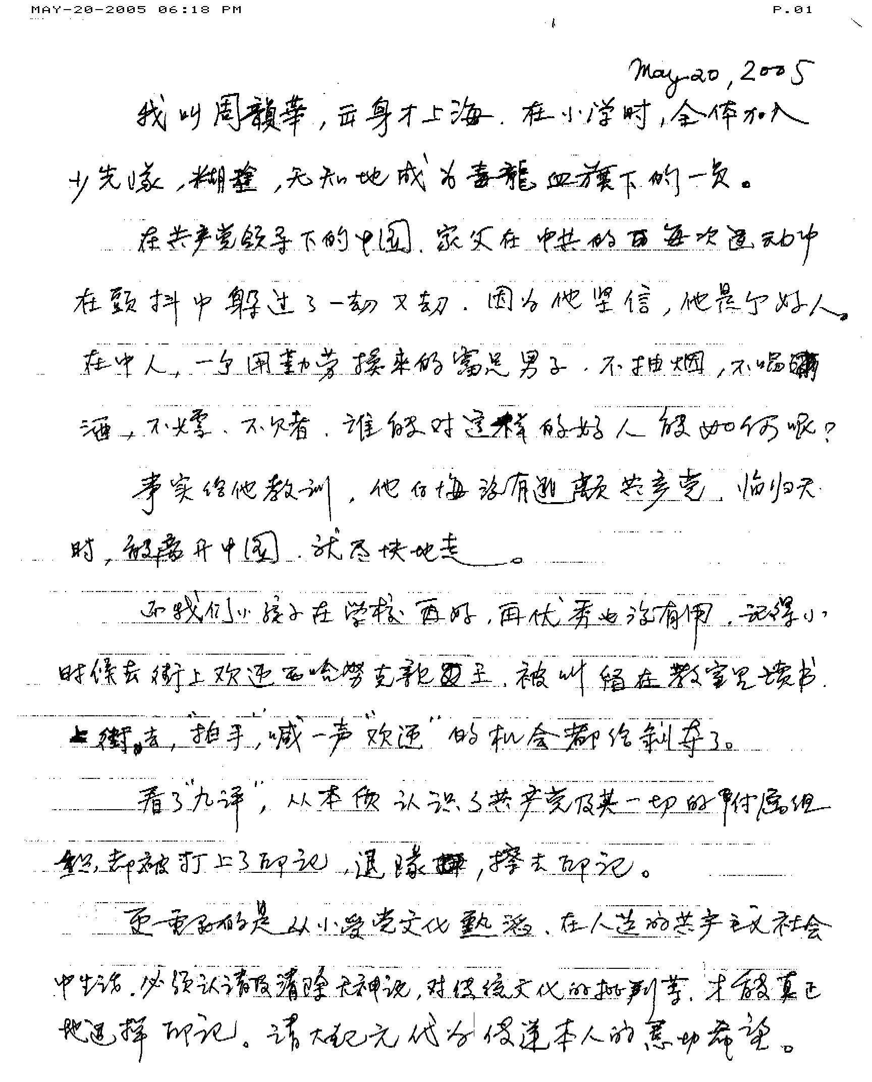 在共产党的领导下的中国,家父在中共的每次运动中,在颤抖中躲过了一劫又一劫,因为他坚信,他是个好人。在中国,一个用勤劳换来的富足男子,不抽烟,不喝酒,不嫖,不赌,谁能对这样的好人能如何呢?