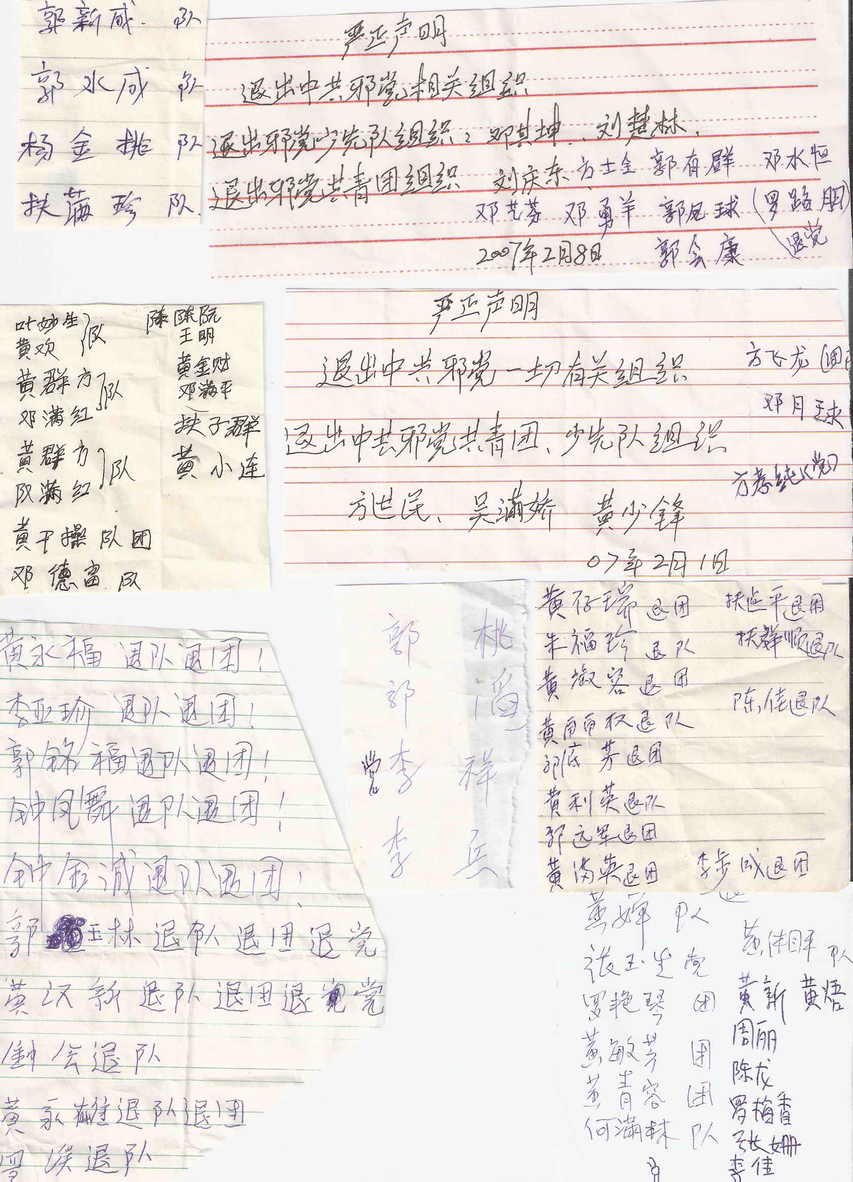 退出邪*党-共青团组织:刘庆东 方士全 郭有群 邓水恒 邓艺芬 邓勇羊 郭凤球 郭会康