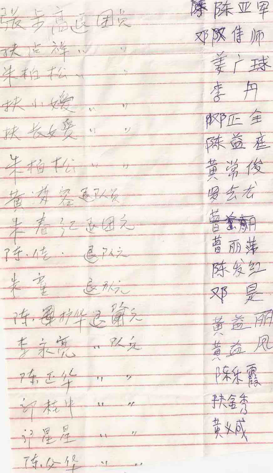 黄容 陈佳 朱童 陈护华 李永亮 陈正华 郭桂中 郭星星 陈父华 陈亚军 邓恃师 姜广球 李丹 邓正全 陈益庭 黄常俊 罗会厷 曾丽萍 陈发红 邓是 黄益丽 黄益凤 陈乐霞 扶金秀 黄义成 32