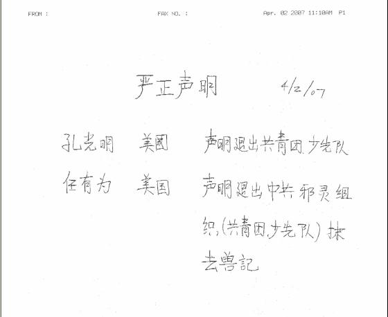 任有为 美国 声明退出中共邪灵组织(共青团、少先队),抹去兽记。