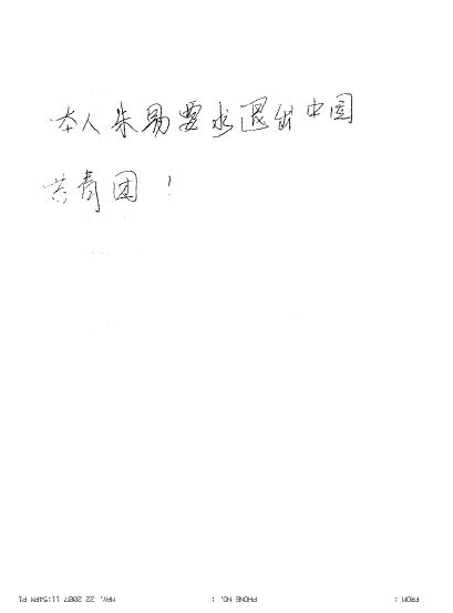 本人朱易要求退出中国共青团!