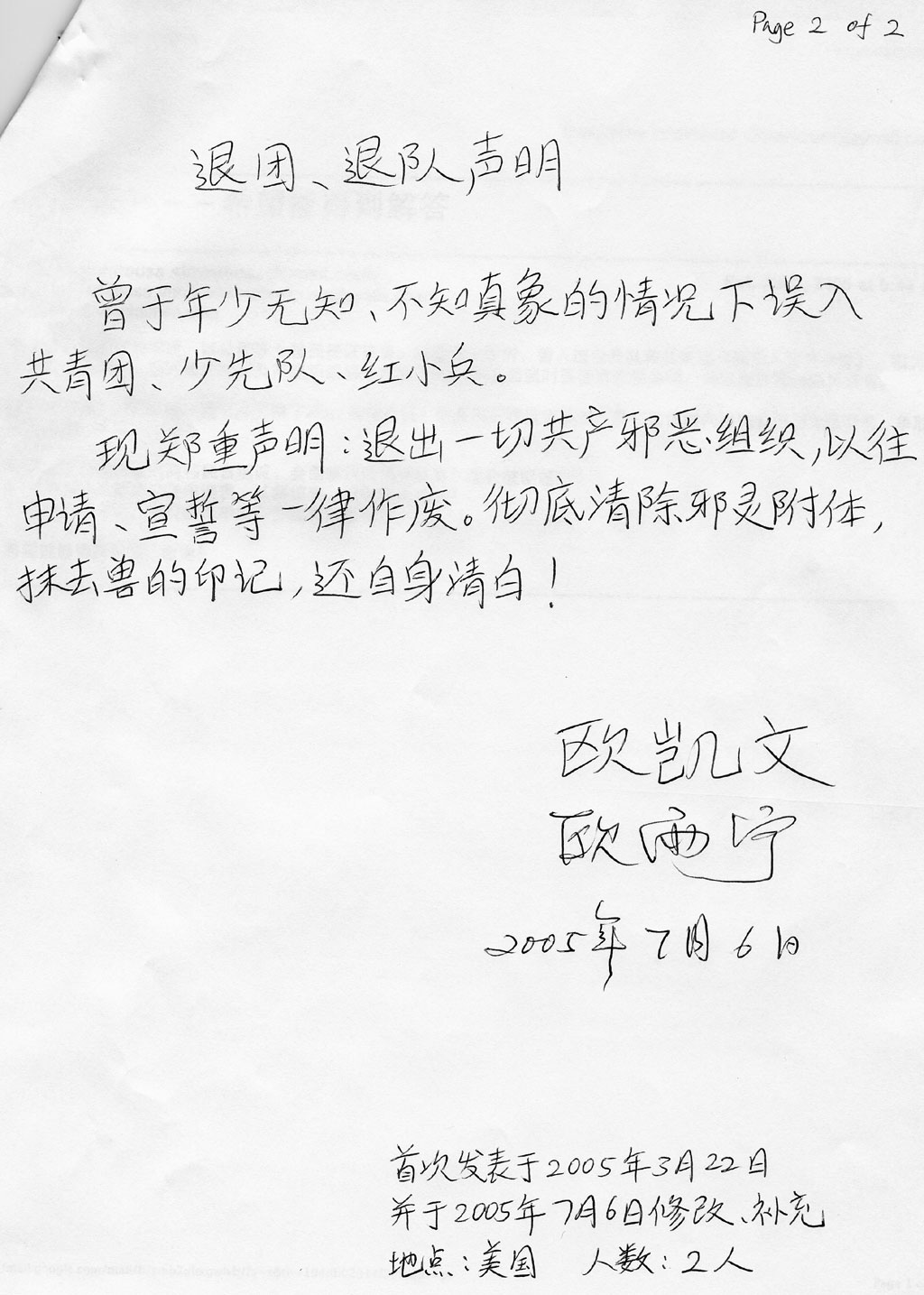 声明人: 欧凯文 欧雨宁 等2人